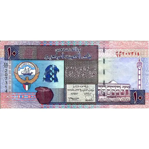 | 裏面の銘文 | We Seek God`s Assistance Central Bank of Kuwait Ten Dinars 10 |