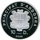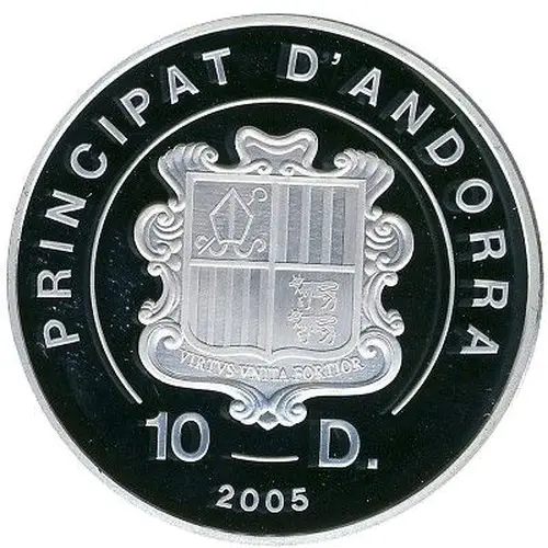 | Chữ khắc mặt trước | PRINCIPAT D`ANDORRA VIRTVS VNITA FORTIOR 10 D. 2005 (Translation: Principality of Andorra United virtue is stronger) |