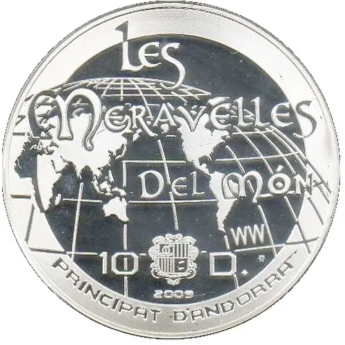 | Obverse lettering | LES MERAVELLES DEL MÓN 10 D. 2009 PRINCIPAT D`ANDORRA (Translation: The Wonders of the World Principality of Andorra) |