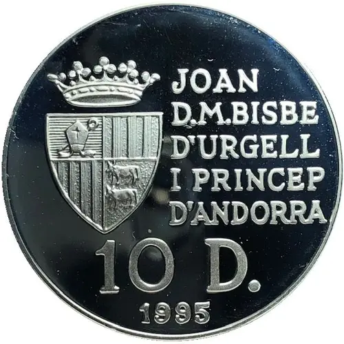 | 正面铭文 | JOAN D.M.BISBE D`URGELL I PRINCEP D`ANDORRA 10 D. 1995 (Translation: Joan D.M. Bishop of Urgell and Prince of Andorra) |