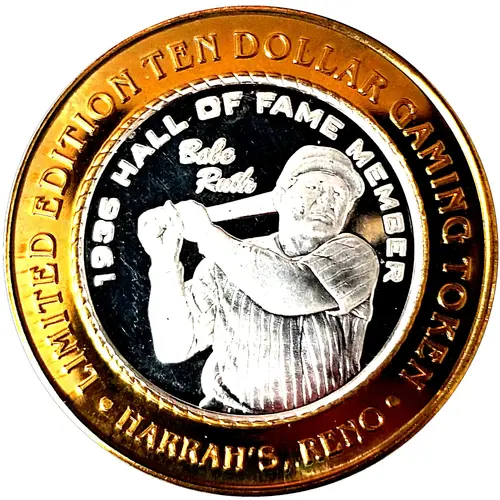 | Chữ khắc mặt trước | LIMITED EDITION TEN DOLLAR GAMING TOKEN 1936 HALL OF FAME MEMBER BABE RUTH HARRAH`S, RENO |