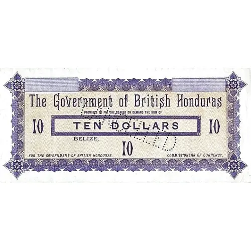 | Obverse lettering | The Government of British Honduras PROMISE TO PAY THE BEARER ON DEMAND THE SUM OF TEN DOLLARS BELIZE FOR THE GOVERNMENT OF BRITISH HONDURAS COMMISSIONERS OF CURRENCY 10 |