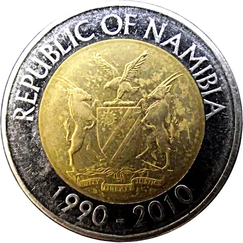 | Obverse lettering | REPUBLIC OF NAMIBIA UNITY LIBERTY JUSTICE 1990 - 2010 |
