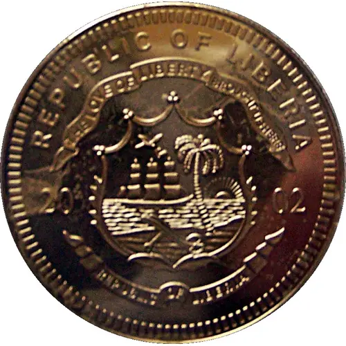 | Obverse lettering | REPUBLIC OF LIBERIA THE LOVE OF LIBERTY BROUGHT US HERE 2002 REPUBLIC OF LIBERIA |