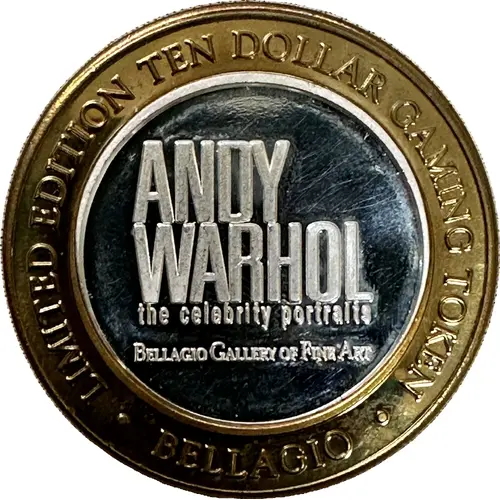 | Obverse lettering | LIMITED EDITION TEN DOLLR GAMING TOKEN ANDY WARHOL the celebrity portraits BELLAGIO GALLERY OF FINE ARTS BELLAGIO |