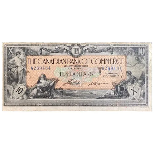 | Obverse lettering | 10 DOLLARS TEN THE CANADIAN BANK OF COMMERCE WILL PAY TO BEARER ON DEMAND TEN DOLLARS Toronto 2ᴺᴰ JANY, 1917. |