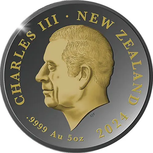 | Obverse lettering | CHARLES III NEW ZEALAND SJF .999 Ag 5oz 2024 |