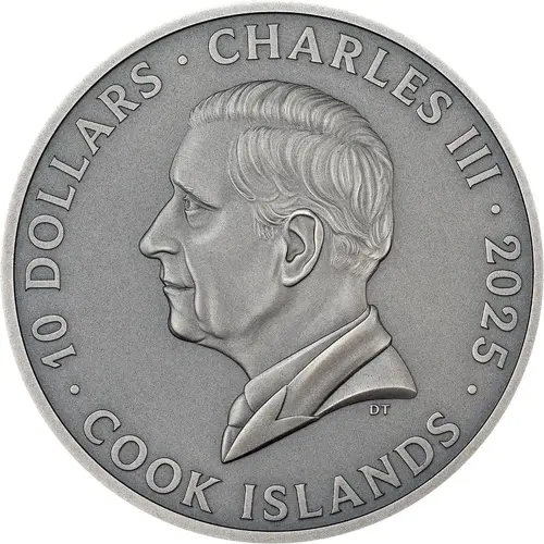 | Chữ khắc mặt trước | 10 DOLLARS · CHARLES III · 2025 DT · COOK ISLANDS · |