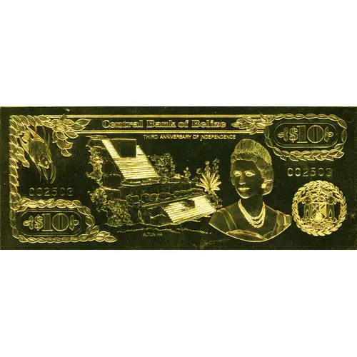 Central Bank of Belize THIRD ANNIVERSARY OF INDEPENDENCE SUB • UMBRA • FLOREO $10 (Translation: I flourish in the shade.) |