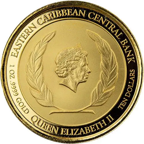 | 正面铭文 | EASTERN CARIBBEAN CENTRAL BANK 1 OZ .9999 GOLD QUEEN ELIZABETH II TEN DOLLARS |