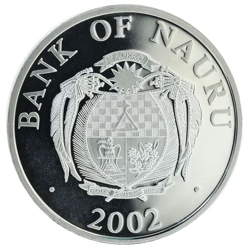 Chữ khắc mặt trước BANK OF NAURU NOAERO GOD`S WILL FIRST 2002