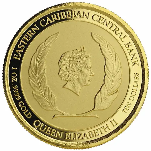 EASTERN CARIBBEAN CENTRAL BANK 1 OZ .9999 GOLD TEN DOLLARS QUEEN ELIZABETH II |