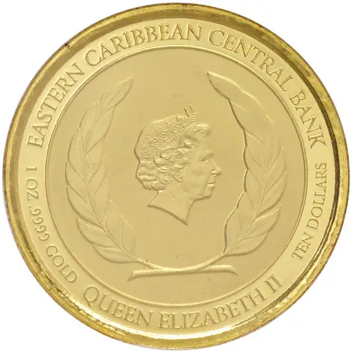 EASTERN CARIBBEAN CENTRAL BANK 1 OZ .9999 GOLD QUEEN ELIZABETH II TEN DOLLARS |