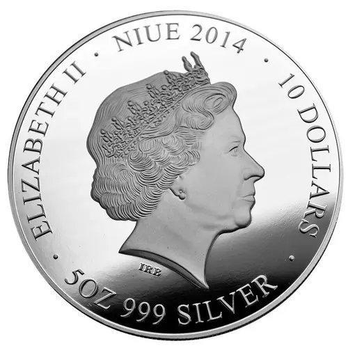 | Obverse lettering | ELIZABETH II · NIUE 2014 · 10 DOLLARS IRB · 5OZ 999 SILVER · |