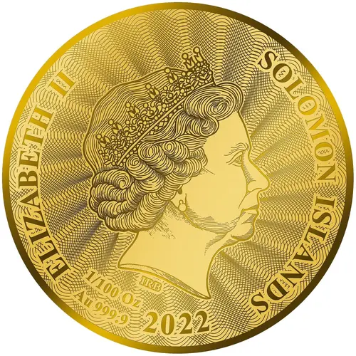| Obverse lettering | ELIZABETH II SOLOMON ISLANDS IRB 1/100 Oz Au 999.9 2022 |
