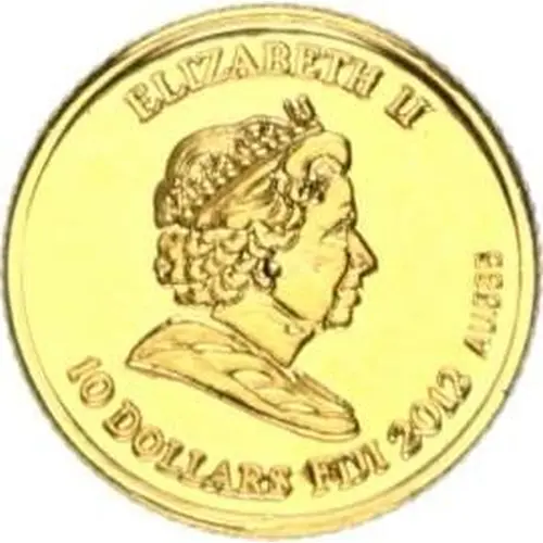 | Obverse lettering | ELIZABETH II 10 DOLLARS FIJI 2012 AU 585 |