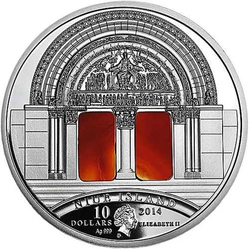 The passage between the narthex and the nave of the Basilica of St. Mary Magdalene in Vézelay decorated with agate inserts with the Effigy of Her Majesty Queen Elizabeth |