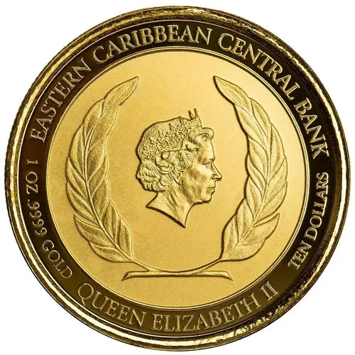 | Averslegende | EASTERN CARIBBEAN CENTRAL BANK 1 OZ .9999 GOLD QUEEN ELIZABETH II TEN DOLLARS |