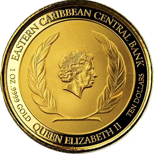 EASTERN CARIBBEAN CENTRAL BANK 1 OZ .9999 GOLD TEN DOLLARS QUEEN ELIZABETH II |