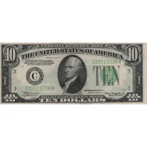 FEDERAL RESERVE NOTE THE UNITED STATES OF AMERICA THIS NOTE IS LEGAL TENDER FOR ALL DEBTS, PUBLIC AND PRIVATE, AND IS REDEEMABLE IN LAWFUL MONEY AT THE UNITED STATES TREASURY, OR AT ANY FEDERAL RESERVE BANK. WASHINGTON, D.C. HAMILTON WILL PAY TO THE BEARER ON DEMAND TEN DOLLARS |