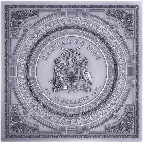 Obverse lettering BARBADOS 2026 PRIDE AND INDUSTRY 6 oz 10 DOLLARS Ag 999