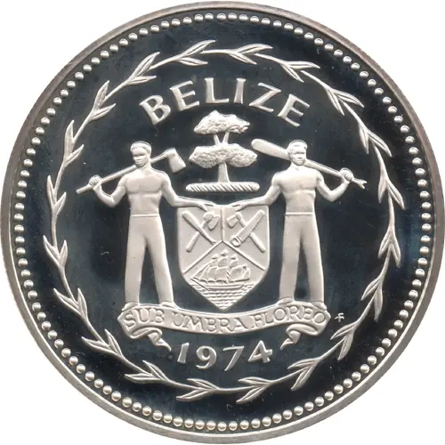 | Obverse lettering | BELIZE SUB UMBRA FLOREO FM 1974 (Translation: I flourish in the shade.) |