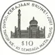 | 裏面の銘文 | KERAJAAN BRUNEI $10 ULANG TAHUN KE - 10 LEMBAGA MATA WANG 1977 (Translation: Brunei Government 10 Dollars Birthday to - 10 Years Money Board) |