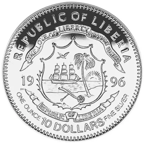 | 表面の銘文 | REPUBLIC OF LIBERIA THE LOVE OF LIBERTY BROUGHT US HERE 1996 REPUBLIC OF LIBERIA ONE OUNCE 10 DOLLARS FINE SILVER |
