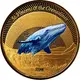 | Reverse description | Humpback whale (in color) crashing the waves, date below. |