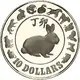 Rabbit facing to the right within circle. The value 10 DOLLARS below, with various representations of lunar animals around the border. |