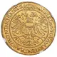 Crowned double-headed eagle with coat of arms of Groningen upon chest. |