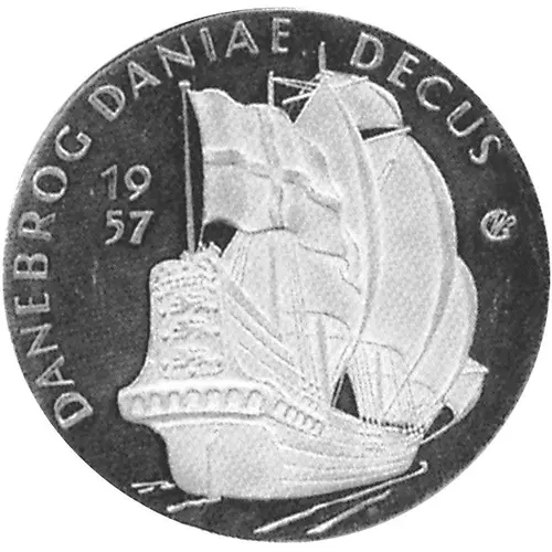 | Obverse lettering | DANEBROG DANIAE DECUS 1957 |