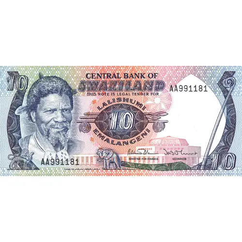 CENTRAL BANK OF SWAZILAND 10 TEN EMALANGENI |