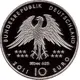 | Reverse description | Representation in the center of the room of a reconstruction of a skeleton of the bird Archaopteryx, recognized as one of the first birds, made from the specimen discovered in 1861 in Germany. All around the bird, at the edge of the scroll, the inscription `150 JAHRE ENTDECKUNG DES URVOGEIS`, 150 years of the discovery of the Archaeopteryx. To the left of the bird the inscription `SOLNHOFEN EICHSTATT VOR 150 MIO.` indicates the place of the discovery of the fossil in the limestone quarries and its dating to more than 150 million years... |
