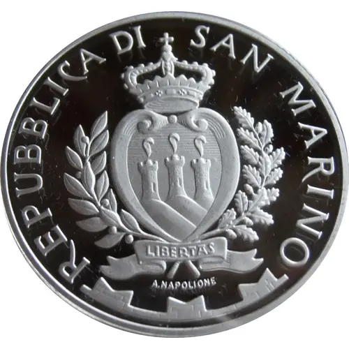 | Obverse lettering | REPUBBLICA DI SAN MARINO LIBERTAS A. NAPOLIONE (Translation: Republic of San Marino Freedom) |