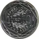 The face value `10 EURO` between two branches of laurel and oak, surrounded by the inscription `RÉPUBLIQUE FRANÇAISE` of three hexagons and the year. To the right of the 10, below, the different cornucopia and above, the different pentagon. |