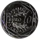 The obverse of the coin shows its face value decorated with an oak branch and a laurel branch, evoking the Euro sign. The motifs on the reverse side are framed with a set of lines representing France`s hexagonal shape. |