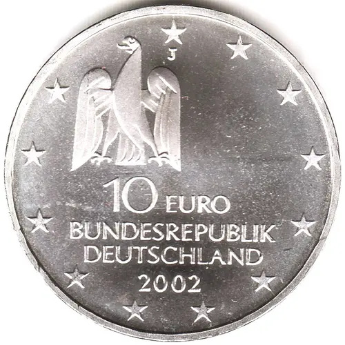 | Obverse lettering | J 10 EURO BUNDESREPUBLIK DEUTSCHLAND 2002 |