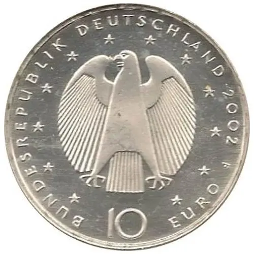 | Obverse lettering | BUNDESREPUBLIK DEUTSCHLAND 2002 F 10 EURO |