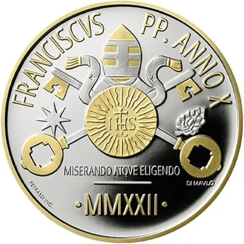 | Obverse lettering | FRANCISCVS PP. ANNO X IHS MISERANDO ATQUE ELIGENDO PETRASSI INC. DI MAVLO • MMXXII • |