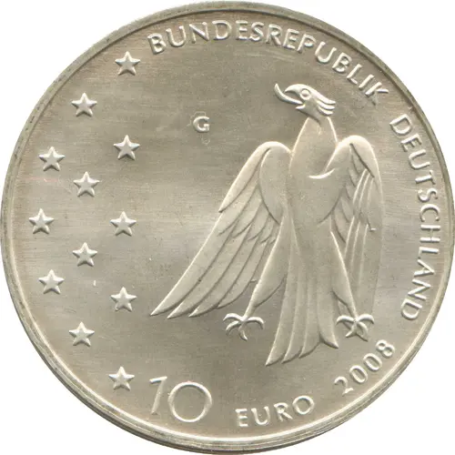 | Legenda awersu | BUNDESREPUBLIK DEUTSCHLAND 10 EURO 2008 (Translation: Federal Republic of Germany 10 Euro 2008) |
