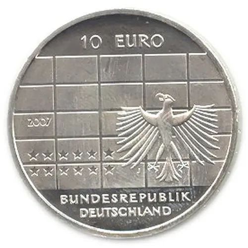 | Obverse lettering | 10 EURO 2007 J BUNDESREPUBLIK DEUTSCHLAND (Translation: 10 Euro 2007 J Federal Republic of Germany) |