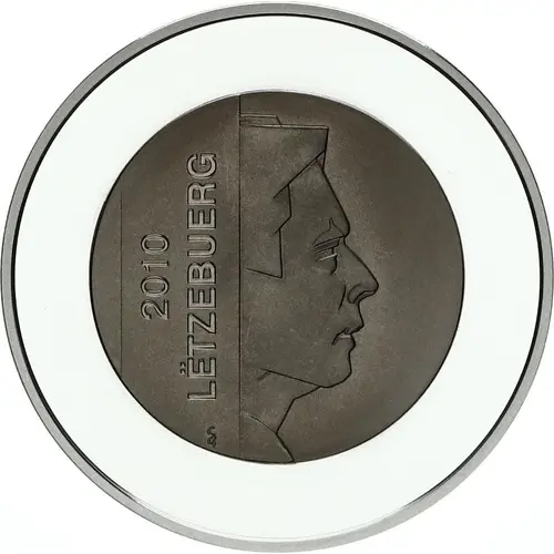 | Obverse description | On the right half, a portrait with geometric features of His Royal Highness Grand Duke Henri is accompanied, on the left half, by the inscription: `LËTZEBUERG 2010` (Luxembourg). |