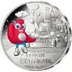 Mascot Phryge, in front of the bay of Mont Saint Michel. |