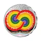 The two rainbows intersect in the shape of infinity, emphasizing the diversity of humankind. The colors on the bottom of the coin correspond to the colors of the `flag of progress,` featuring a five-color chevron: black and brown represent marginalized people of color, and white, pink, and light blue reflect those of the Transgender Pride flag. |