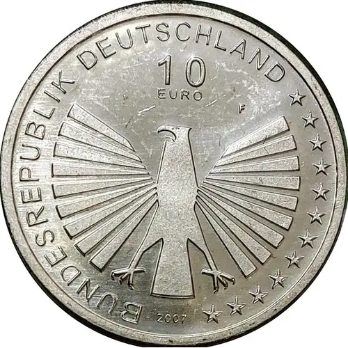 | Obverse lettering | BUNDESREPUBLIK DEUTSCHLAND 10 EURO 2007 F |