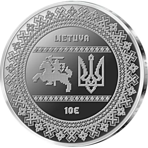 | Descrizione del dritto | Stylised version of the coat of arms of Lithuania and the emblem of Ukraine, denomination below and artistic pattern surrounding the centre. |