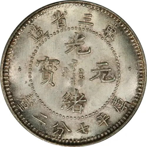 造省三東 光 ᠪᠠᡩᠠᡵᠠᠩᡤᠠ 寶 ᠶᡠᠸᠠᠨ ᠪᠣᠣ 元 ᡩᠣᡵᠣ 緒 釐二分七平庫 (Translation: Made in the Three East Provinces Guangxu (Emperor) / Yuanbao (Original currency) Guangxu (Emperor) / Yuanbao (Original currency) Worth 7.2 Candareens (weight)) |