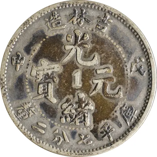 造林吉 申戊 光 寶 1 元 緒 釐二分七平庫 (Translation: Made in Kirin Year 45 Guangxu (Emperor) / Yuanbao (Original currency) Worth 7.2 Candareens (weight)) |