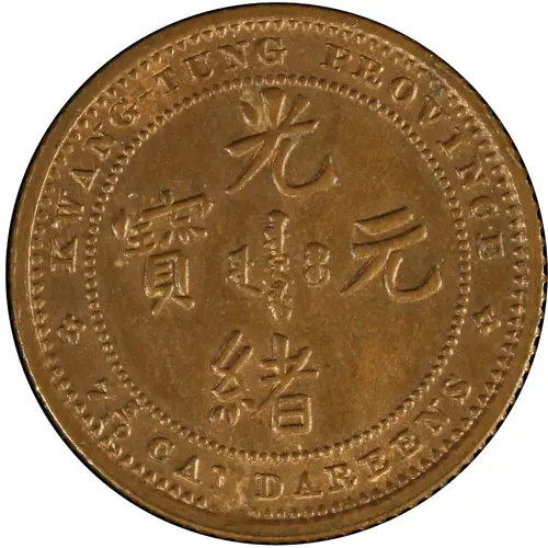 Historical Context: This 1889 copper 10 Fen pattern originates from Kwangtung Province during Emperor Guangxu's reign, a transformative Qing Dynasty period. As China navigated Western influence and internal reform, Kwangtung pioneered currency modernization through experimental patterns like this. It represents a crucial phase, transitioning from traditional cast to machine-struck coinage, exploring a decimalized 'Fen' system while retaining a link to the traditional candareen weight standard. This pattern underscores Kwangtung's pivotal role in China's early numismatic modernization efforts, reflecting a broader national drive for economic reform and integration with global standards.